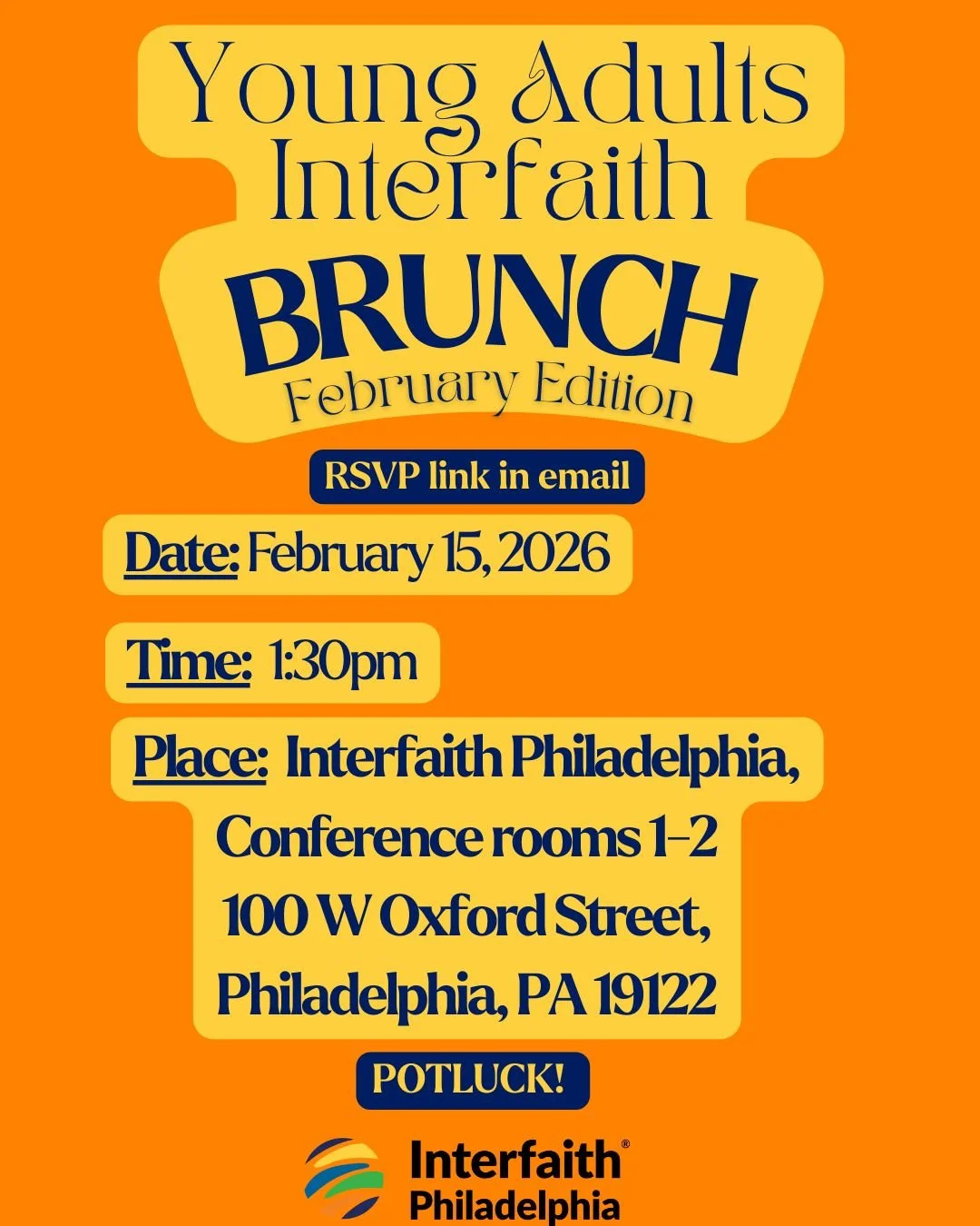 Interfaith Philadelphia is hosting a Young Adult Interfaith Brunch on Sunday, February 15th at 1.30 PM. Follow the link for more information or to register.