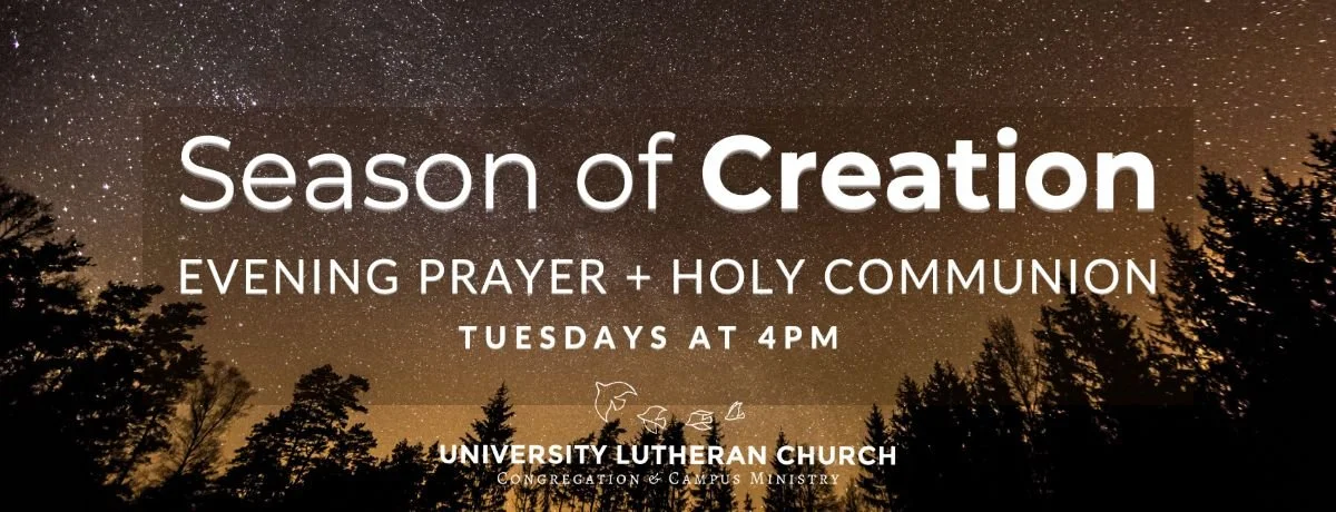 This fall at Evening Prayer we will join the worldwide ecumenical movement celebrating the Season of Creation. Join us as we sing and pray together each Tuesday at 4.00 PM before Feast Incarnate. All are welcome!