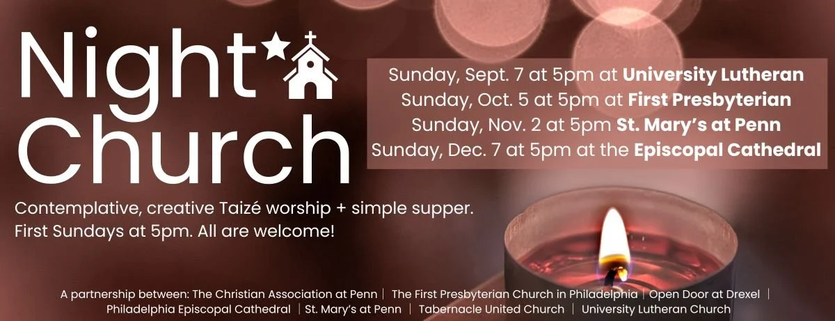 Mark your calendars and save the date for Night Church all fall! Join us at 5.00 PM the first Sunday of each month for a contemplative, creative Taize worship, led by amazing musicians, followed by a simple supper. All are welcome!